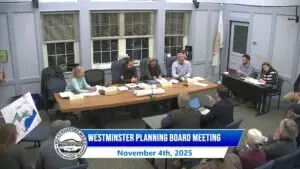 GOVERNMENT CHANNEL ON-DEMANDSorted by DATE (newest first)Additional videos will load when you scroll down Ashburnham Select Board Meetings Ashburnham Town Meetings AWRSD School Committee Meetings Westminster Select Board Meetings Westminster Town Meetings Westminster Planning Board Meetings Miscellaneous Government Meetings Search Search On-Demand Ashburnham Select Board Meeting 12-1-2025 Westminster Planning Board Meeting 11-25-2025 School Committee Meeting 11-20-2025 Westminster Special Town Meeting 11-18-2025 Ashburnham Select Board Meeting 11-17-2025 Westminster Select Board Meeting 11-17-2025 Westminster Planning Board Meeting 11-4-2025 Ashburnham Select Board Meeting 11-3-2025 Westminster Select Board Meeting 11-3-2025 The Town Crier – Episode 16 – Fall into Town Meeting Season Ashburnham Special Town Meeting 10-27-2025 Westminster Select Board Meeting 10-27-2025 School Committee Meeting 10-23-2025 Ashburnham Select Board Meeting 10-20-2025 Ashburnham Public Presentation – MBTA Communities Act 10-16-2025 Ashburnham Select Board Meeting (Tri-Board) 10-15-2025 Westminster Planning Board Meeting 10-14-2025 The Town Crier – Episode 15 – Catching Up and Kicking Off Fall in Westminster Ashburnham Select Board Meeting 10-6-2025 Westminster Select Board Meeting 10-6-2025