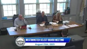 On-Demand - Westminster Select Board MeetingsSorted by DATE (newest first)Additional videos will load when you scroll down Return to Government Channel On-Demand Search Search On-Demand Westminster Select Board Meeting 11-17-2025 Westminster Select Board Meeting 11-3-2025 Westminster Select Board Meeting 10-27-2025 Westminster Select Board Meeting 10-6-2025 Westminster Select Board Meeting 9-22-2025 Westminster Select Board Meeting 9-8-2025 Westminster Select Board Meeting 8-25-2025 Westminster Select Board Meeting 8-4-2025 Westminster Select Board Meeting 7-21-2025 Westminster Select Board Meeting 7-7-2025 Westminster Select Board Meeting 6-23-2025 Westminster Select Board Meeting 6-9-2025 Westminster Select Board Meeting 5-12-2025 Westminster Select Board Meeting 4-28-2025 Westminster Select Board Meeting 4-14-2025 Westminster Select Board Meeting 4-7-2025 Westminster Select Board Meeting 3-10-2025 Westminster Select Board Meeting 3-3-2025 Westminster Select Board Meeting 2-18-2025 Westminster Select Board Meeting 2-10-2025